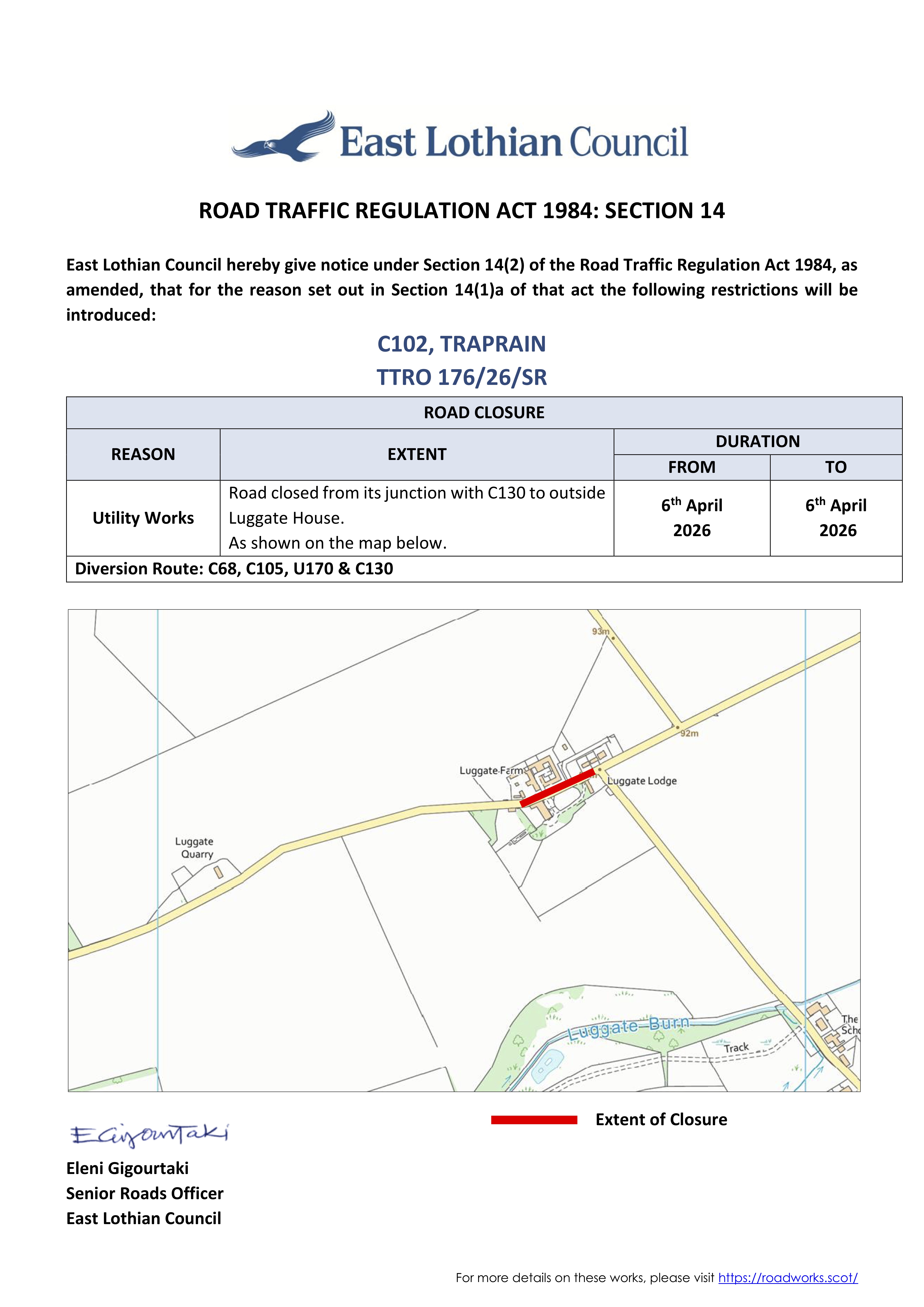 Road Works - Luggate, 6th April 2026